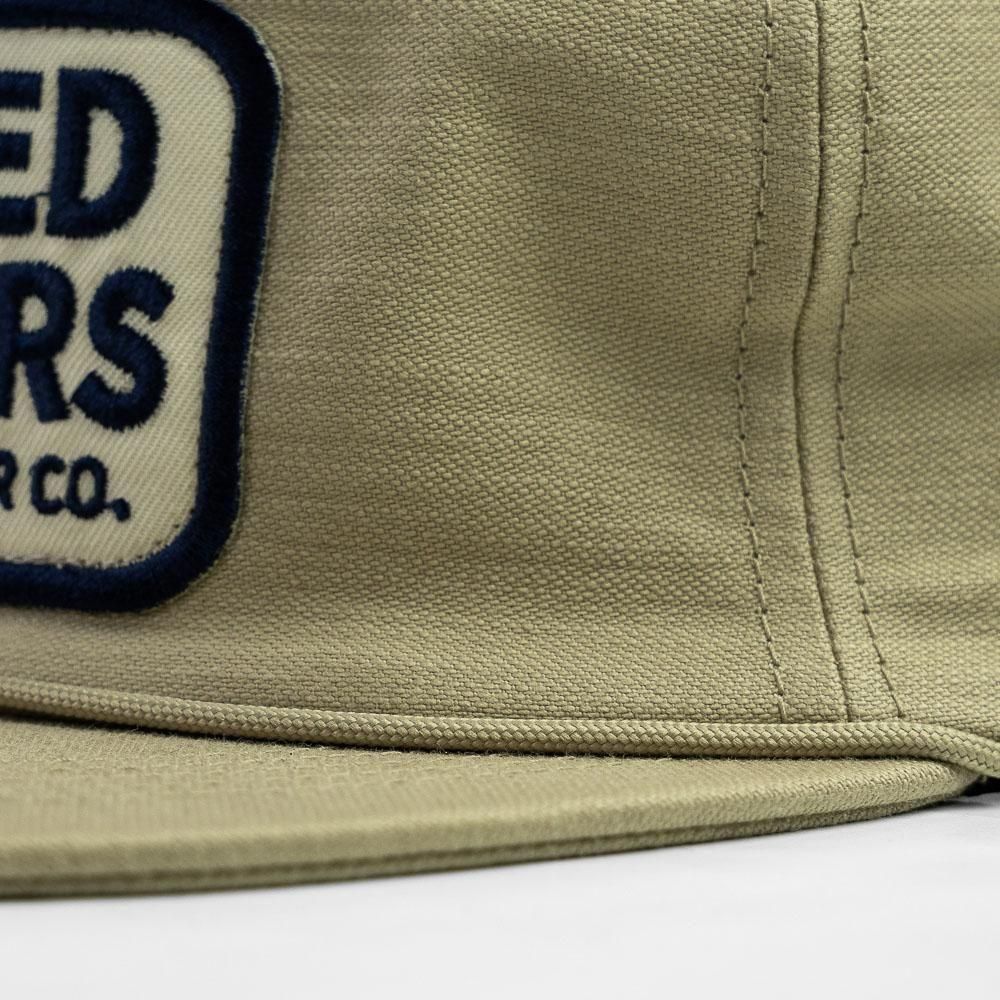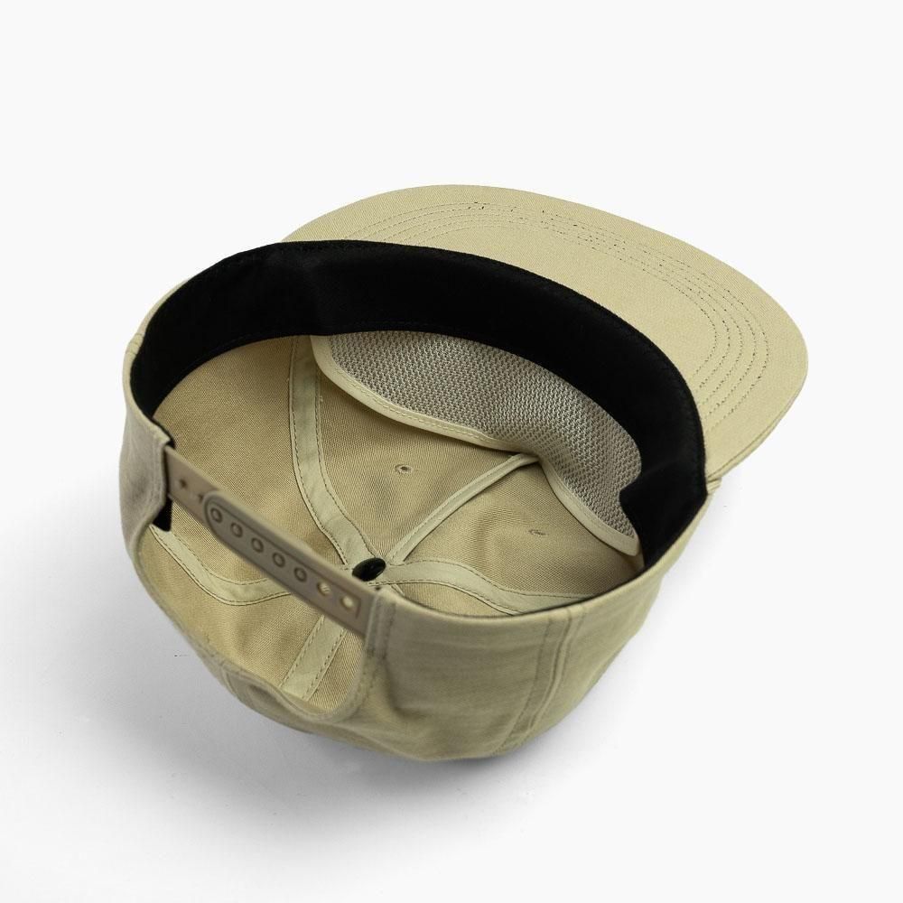 US ARMYベイカーパンツに50〜70年代前半まで採用されていたバックサテンをもとに仕上げられたミリタリーバックサテンを使用した、クラシカルな5パネルトラッカーキャップ。