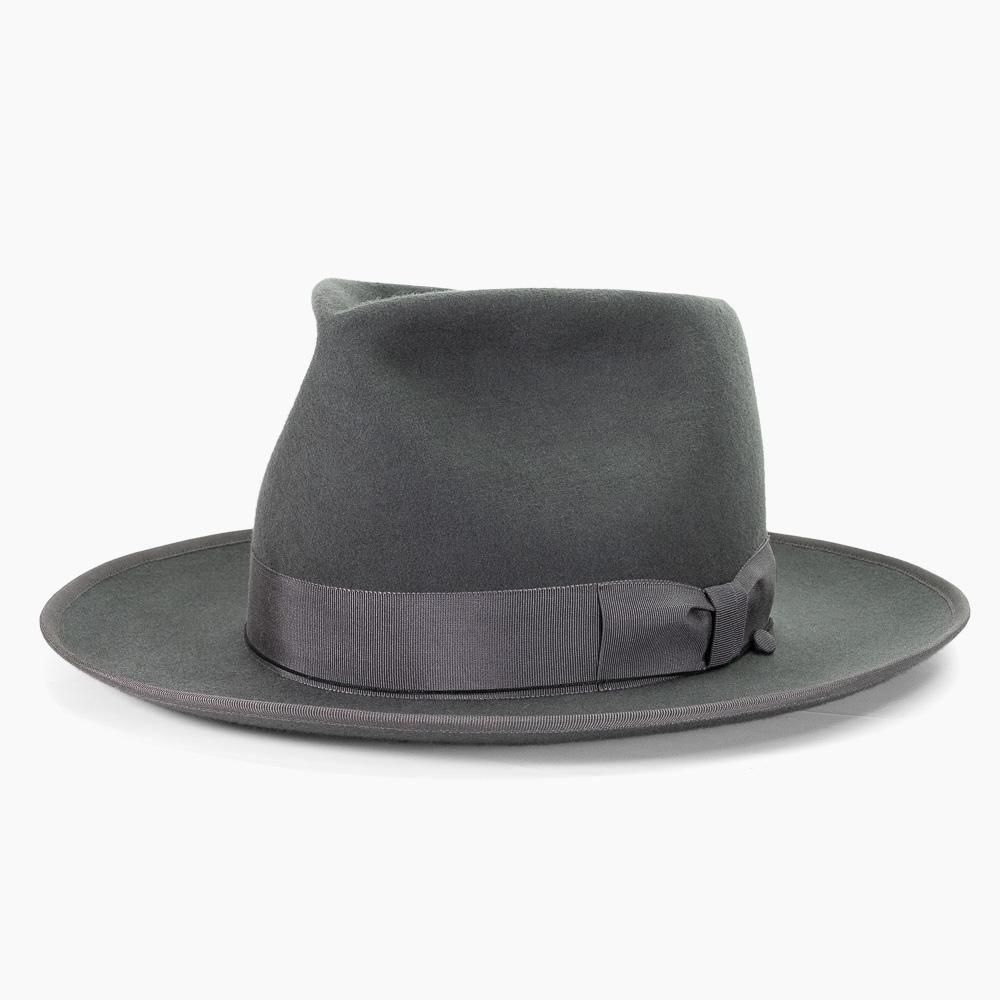 最大の特徴は、高さ13.5cmのハイクラウンと長さ8cmのロングブリムが織りなす圧倒的な存在感です。